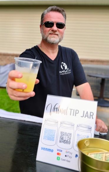 mobile bar with backdrop or tent. RAMP certified mixologist, mixers, garnishes, drink ware, straws, napkins, ice and coolers. In addition, we provide full general and liquor liability insurance, at no additional cost.